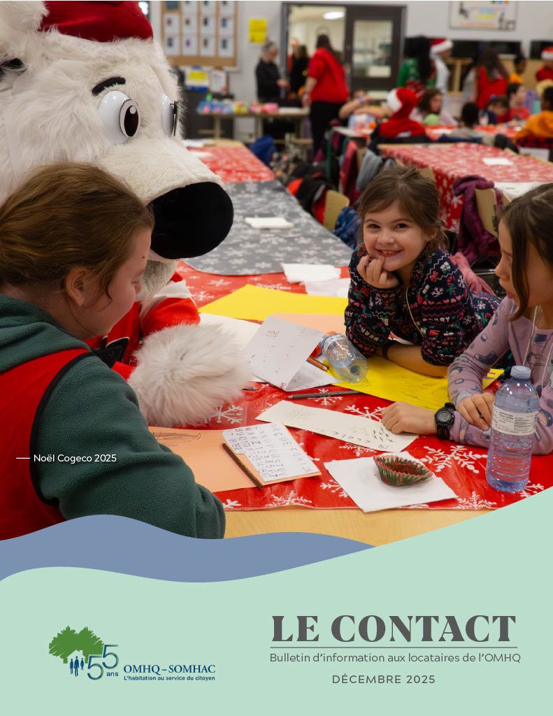 Le Contact est un bulletin d’information, publié environ deux fois par année. Il s’adresse à tous les locataires des Habitations à loyer modique (HLM). Vous y trouverez des articles variés sur l’OMHQ, ses services et ses milieux de vie.